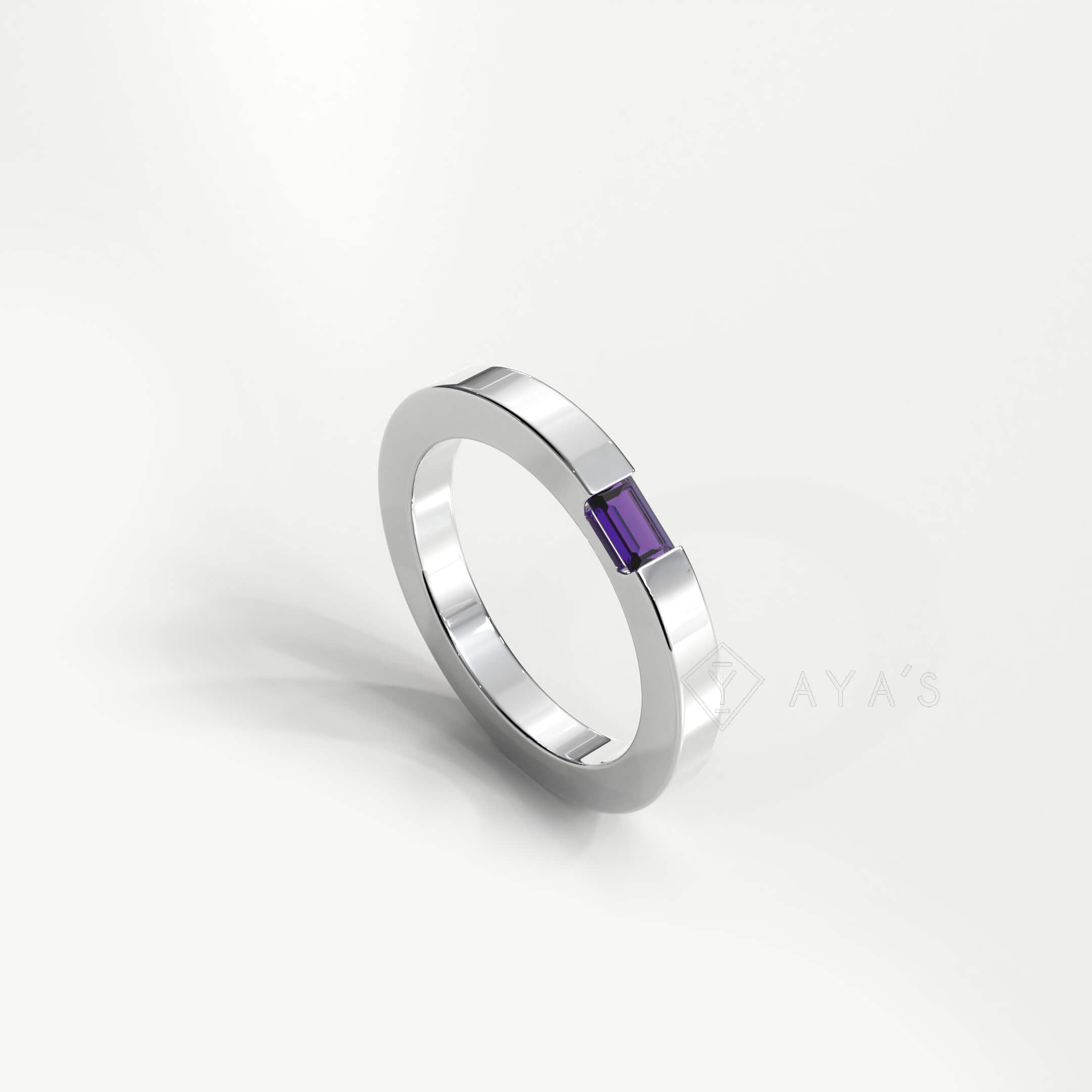 Its clean, rounded form is elevated by your choice of three captivating gemstones—London Blue Topaz, Rhodolite Garnet, or Amethyst—each adding a unique splash of color and depth. The open-form design gives it a modern architectural feel, perfect for those who appreciate subtle yet striking details.
